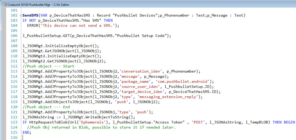 Sometimes you just want to push a notification or send an SMS the cheap way. Here is how you could do it in Dynamics NAV 2018 via C/AL with the use of Pushbullet, “JSON Buffer”, “JSON Management” and “HTTP Web Request Mgt”. This can pretty easily be converted to AL for use in Business Central.